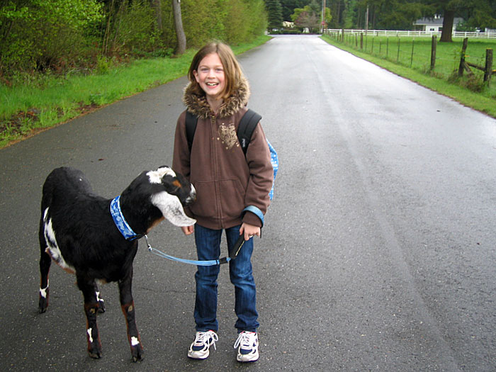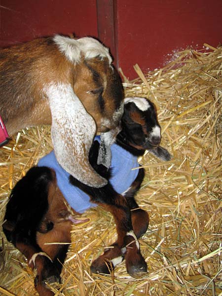 Moose was born in May of 2008 to his purebred Nubian, first-freshener dam, Mable, who has been at the Darn Good Farm since she was a month old. Mable's dam is among the biggest and gentlest Nubians anyone has ever seen, and she earned her grand-championship long ago. Moose's sire is a handsome, registered Nubian buck named Cash, with blue-blood lineage of his own. Moose enjoys riding in the front of the truck, walks on a leash, and has plans for learning to pull a wagon. We'll see...